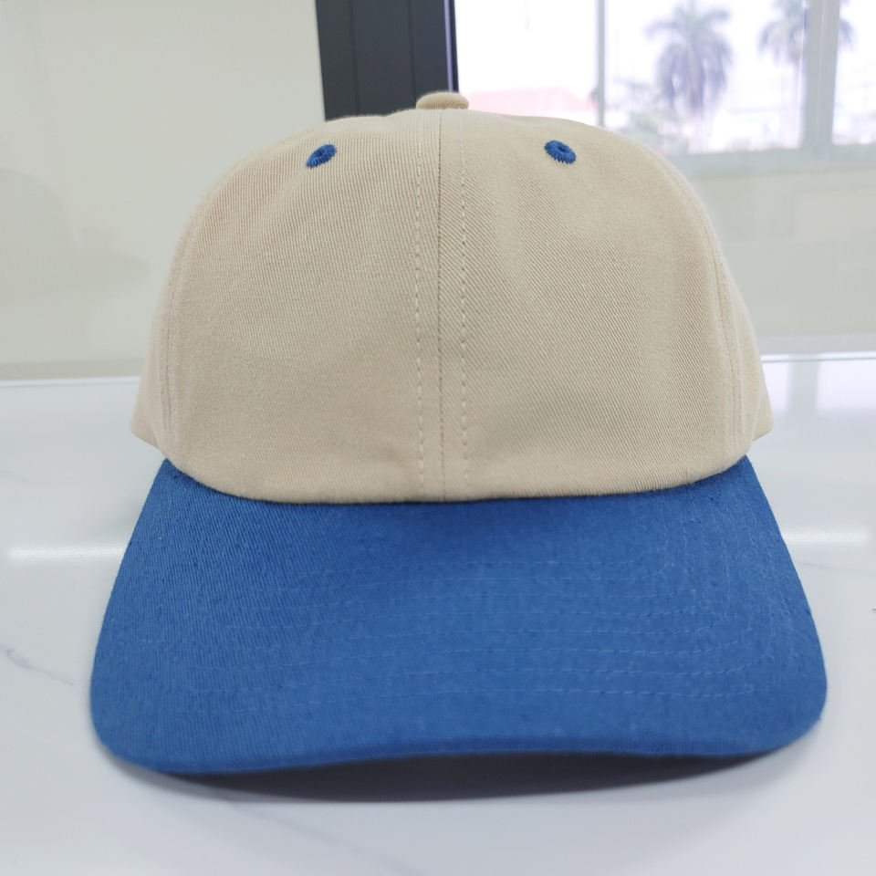 หมวกเบสบอลผ้าฝ้าย100% 2โทนหมวกกีฬาปรับได้ปักโลโก้ได้ตามต้องการด้านหลังแบบกำหนดเอง
