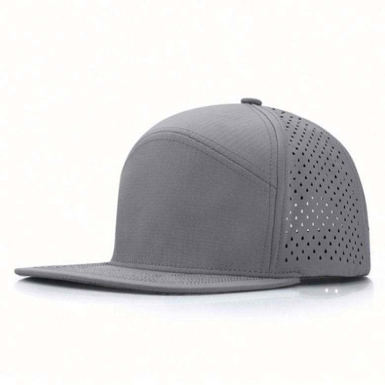 หมวกแก๊ปแบบ snapback 7 แผง ปักโลโก้ PVC คุณภาพสูง ผลิตตามสั่ง (OEM) สำหรับขายส่ง กันน้ำ มีรูเจาะแบบเลเซอร์
