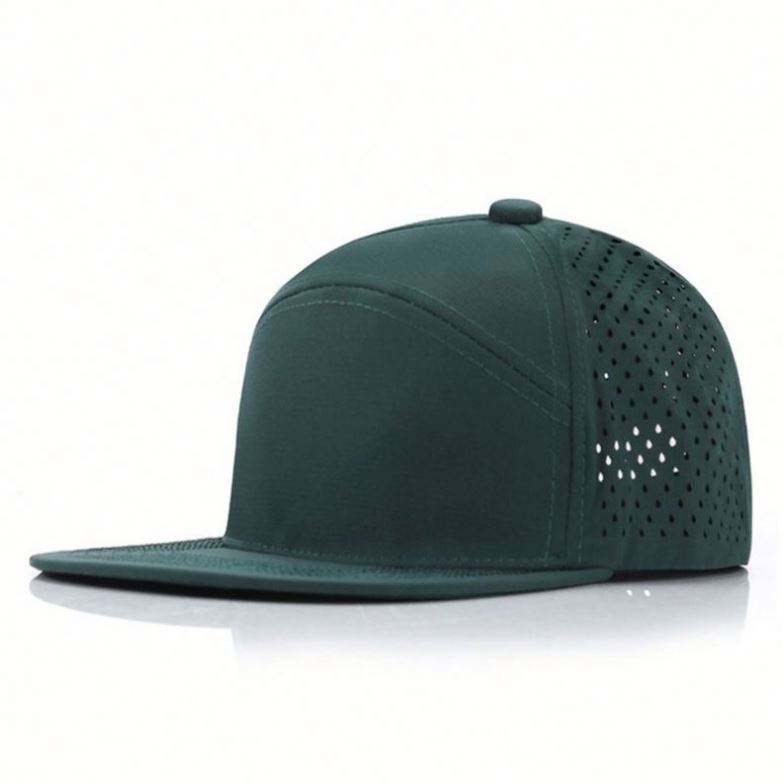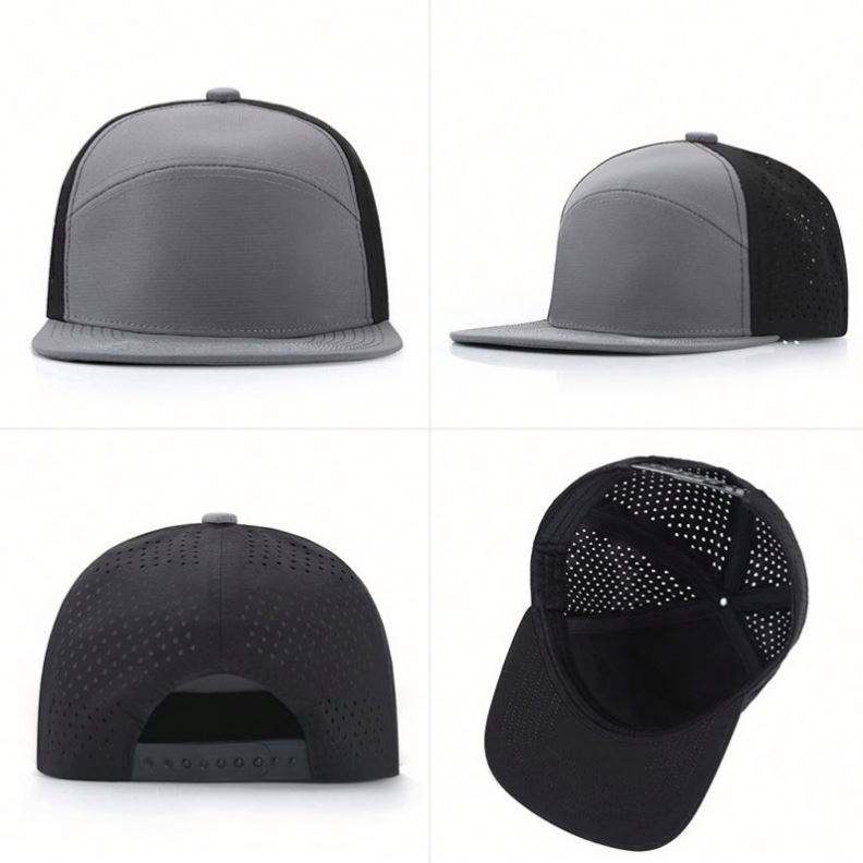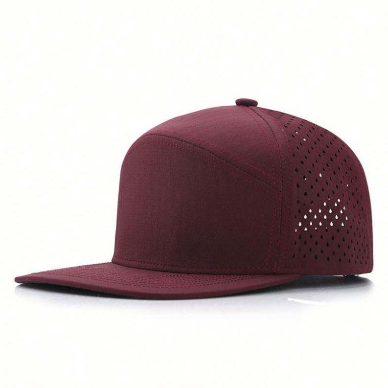 หมวกแก๊ปแบบ snapback 7 แผง ปักโลโก้ PVC คุณภาพสูง ผลิตตามสั่ง (OEM) สำหรับขายส่ง กันน้ำ มีรูเจาะแบบเลเซอร์