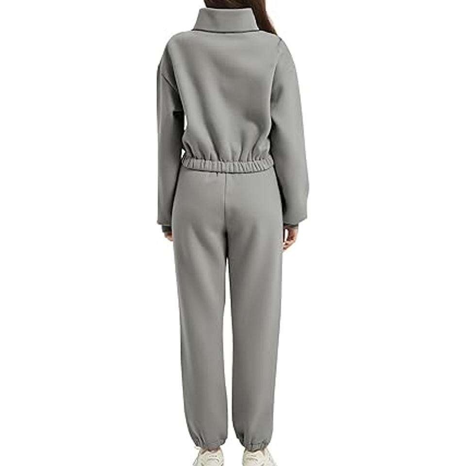 Keywords:Cropped SweatShirt Half Zip up And SweatPant Jogging suit Women