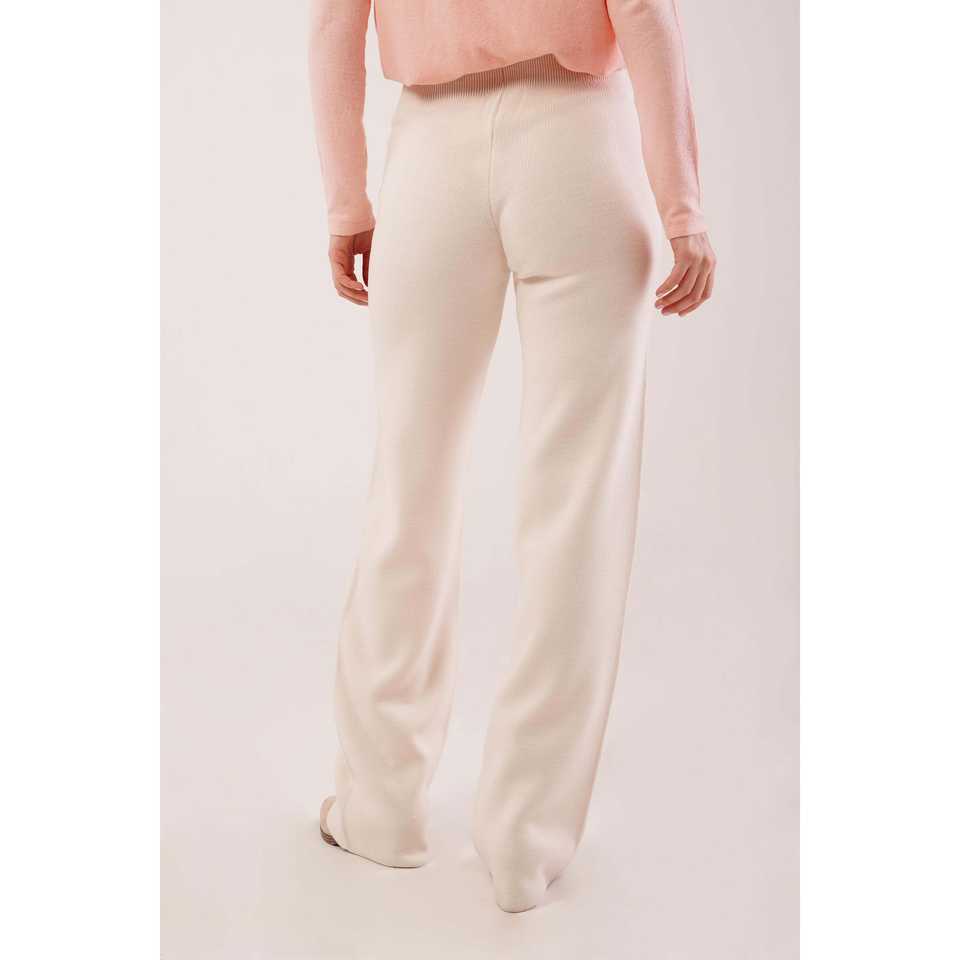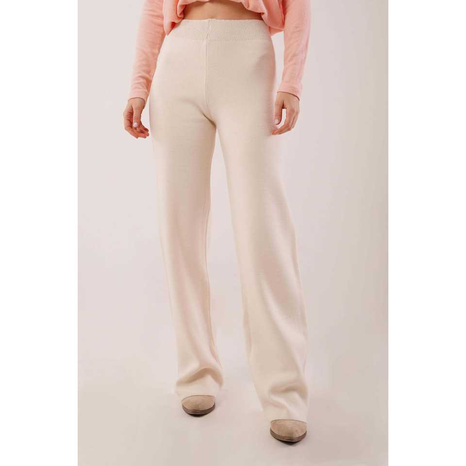 กางเกงขายาวทรงขาบานผ้าถักสีขาวนวล เอวสูง ระบายอากาศได้ดี สไตล์ขายส่ง