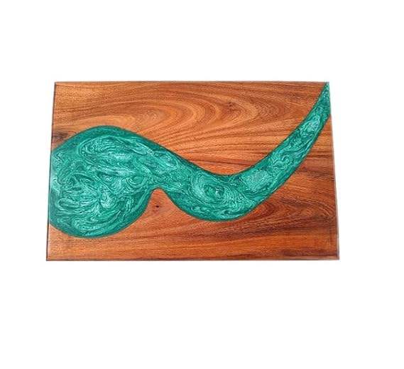 เขียงไม้มะกอกเคลือบอีพ็อกซี่เรซิ่น หนา 1.5 ซม. เป็นมิตรกับสิ่งแวดล้อม สำหรับอาหารเช้า/ชาร์กูเตอรี/หั่นอาหาร ใช้ในครัว ร้านอาหาร ตกแต่งบ้าน HF CRAFTS