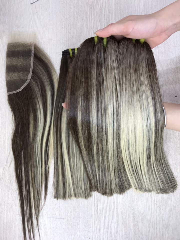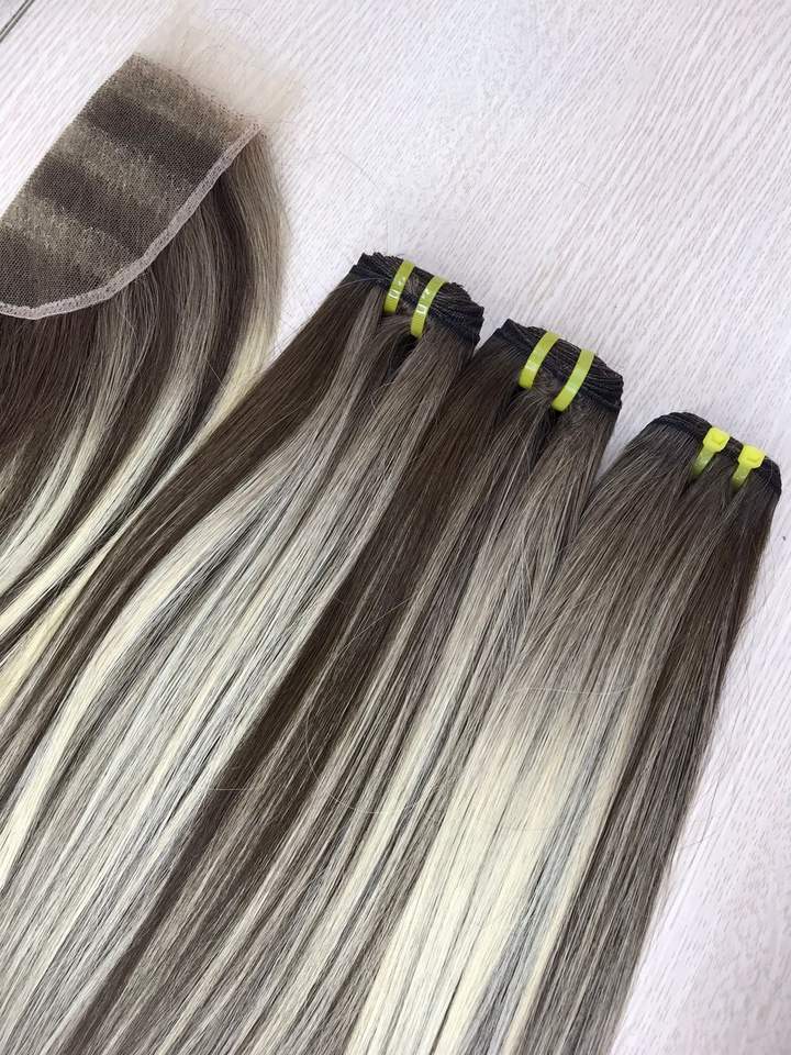 ผมต่อผมตรงกระดูกสีออมเบรเกรด SDD ผมมนุษย์แท้แบบมัดด้านหน้าสำหรับผู้หญิง