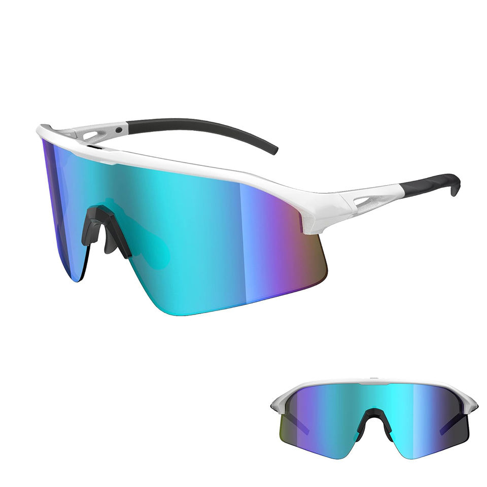 แว่นกันแดดกีฬาขี่จักรยานกันลมหนึ่งชิ้นสำหรับทุกเพศแว่นกันแดดกรอบกระจกเลนส์ป้องกันยูวีออกแบบโลโก้ได้ตามต้องการ