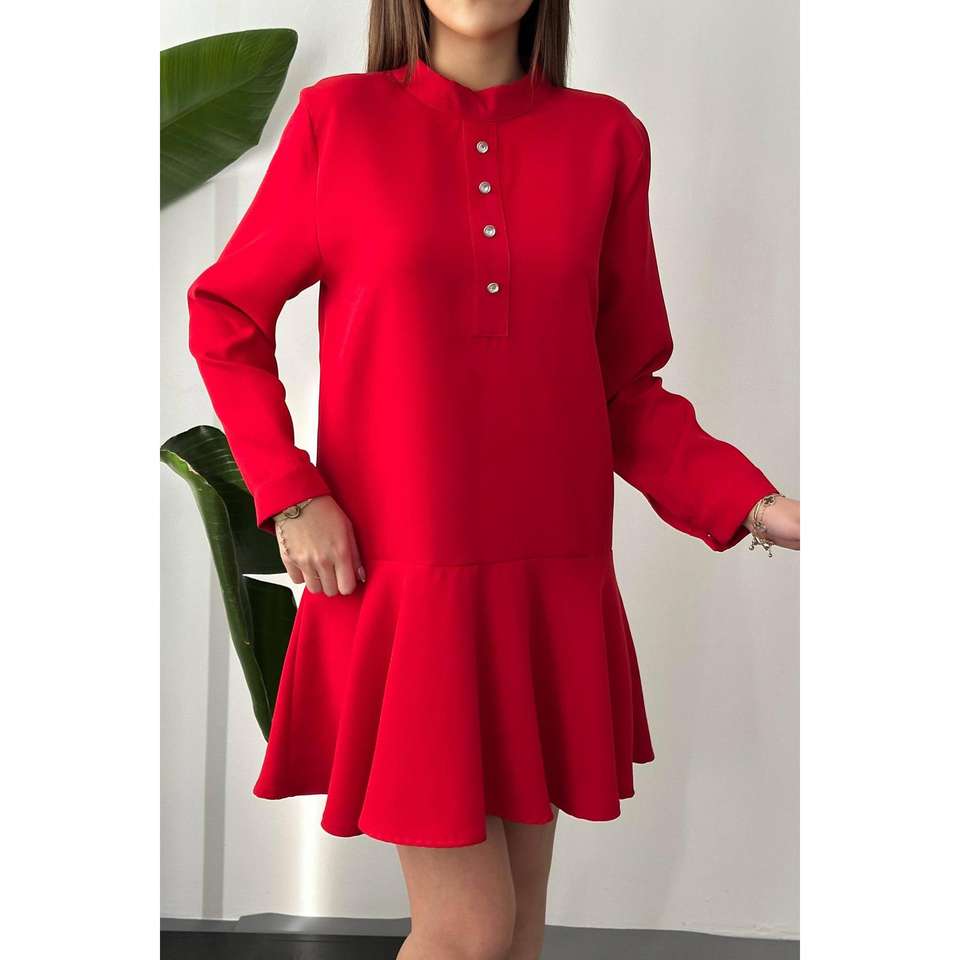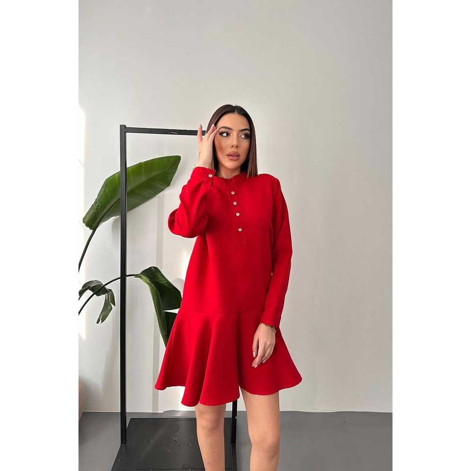 เดรสสั้นถักโครเชต์สีแดงคลาสสิก ไซส์เดียวและ XS ขายส่ง สไตล์สาวออฟฟิศสุดหรู ตกแต่งระบาย เหมาะสำหรับวันหยุดและเทศกาลต่างๆ