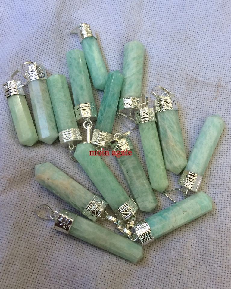 จี้ทรงดินสอคริสตัลอเมซอนประดับพลอยอัญมณีกึ่งมีค่าของฮวงจุ้ยออนไลน์