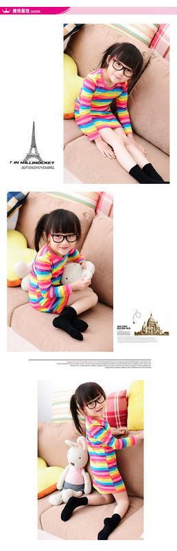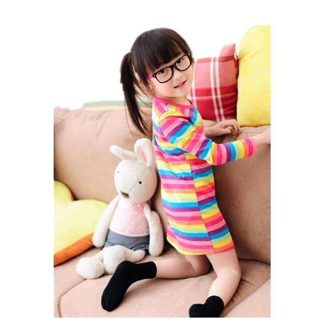 ชื่อสินค้า:ชุดเดรสสั้นแขนยาวลายทางสีแดงลำลองสำหรับเด็กผู้หญิง