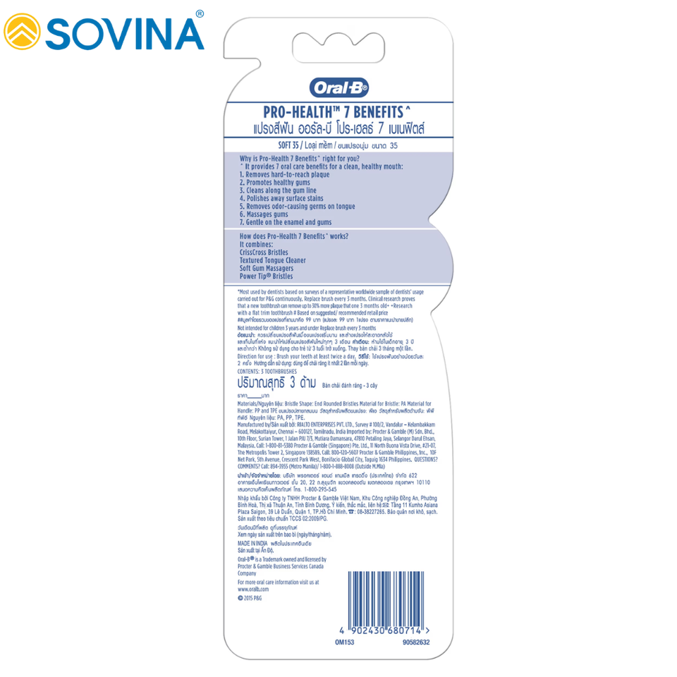 แปรงสีฟันขนนุ่มสำหรับช่องปาก B Pro ซื้อ2แถม1ฟรี3ชิ้น/แพ็ค6แพ็ค/ กล่อง16กล่อง/เคส