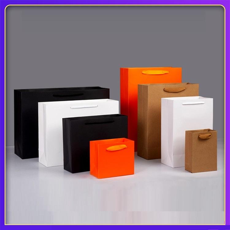 Wholesale Orange Cardboard Shopping Packaging Paper Retail Kraft Bags With Handles for Clothes