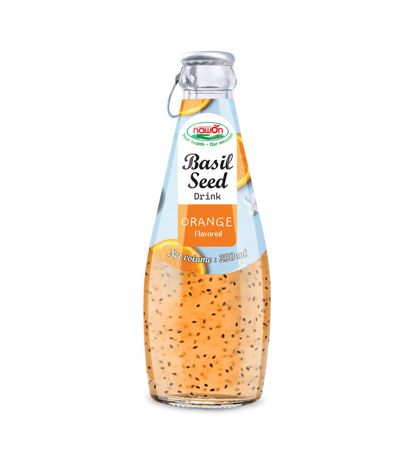 เครื่องดื่ม brcgs ออร์แกนิกฮาลาลในสหภาพยุโรป290มล. น้ำส้มเมล็ดใบโหระพาพร้อมใบรับรอง ISO
