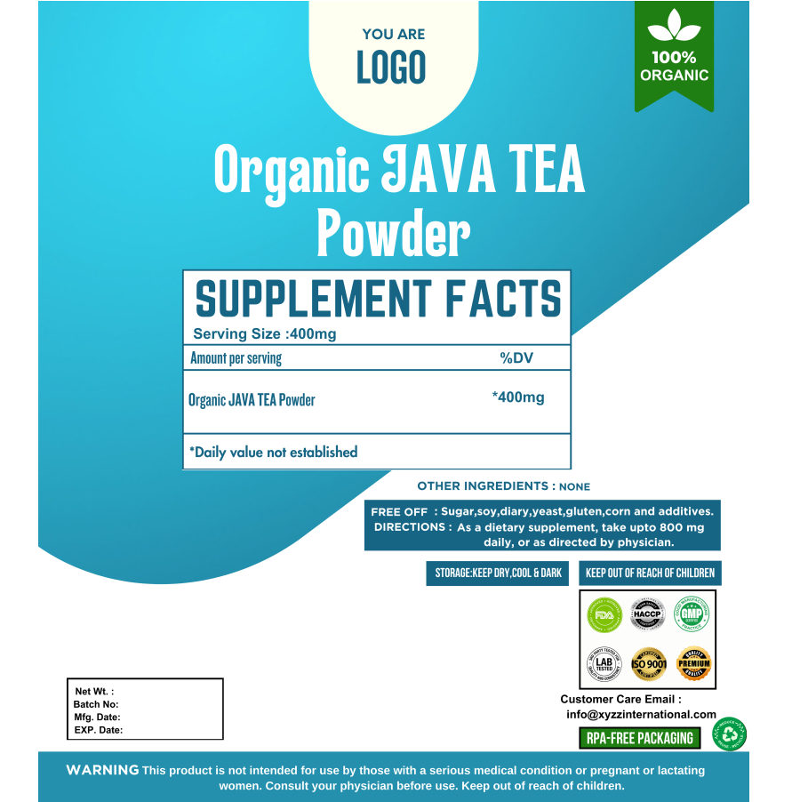 ผงชาจาวาออร์แกนิกจากธรรมชาติ100% ออร์แกนิกการเพาะปลูกแบบธรรมชาติจากอินเดีย