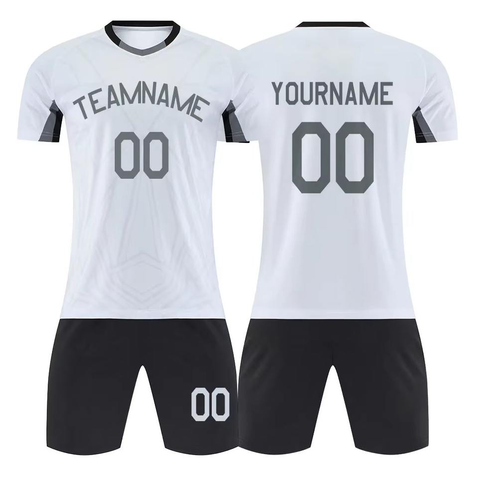 ชุดฟุตบอลแบบขายส่ง ของแท้ ผลิตตามสั่ง รวมเสื้อและกางเกง ผ้าโพลีเอสเตอร์ 100% ป้องกันแบคทีเรียและแห้งเร็ว