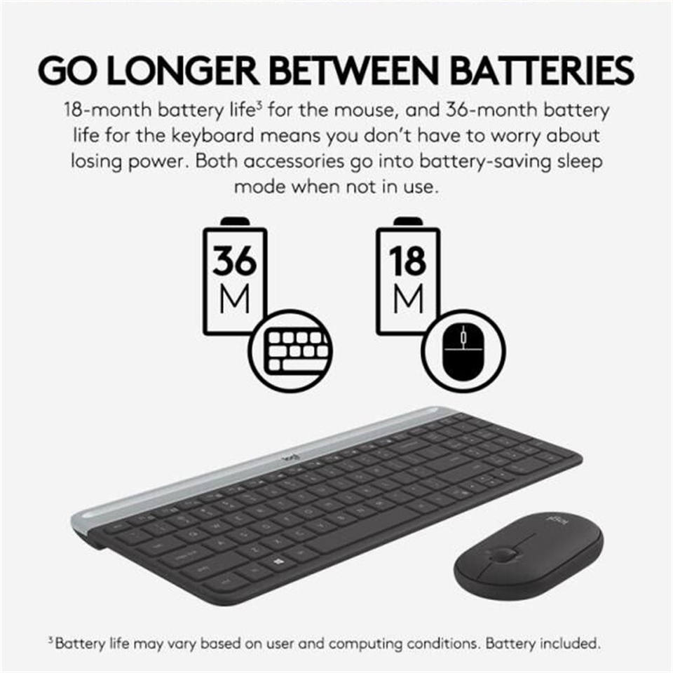 Logitech ดั้งเดิมชุดคีย์บอร์ดและเมาส์ MK470บางเฉียบแบบไร้สายบางเฉียบเงียบ1000dpi ออปติคอลเมาส์
