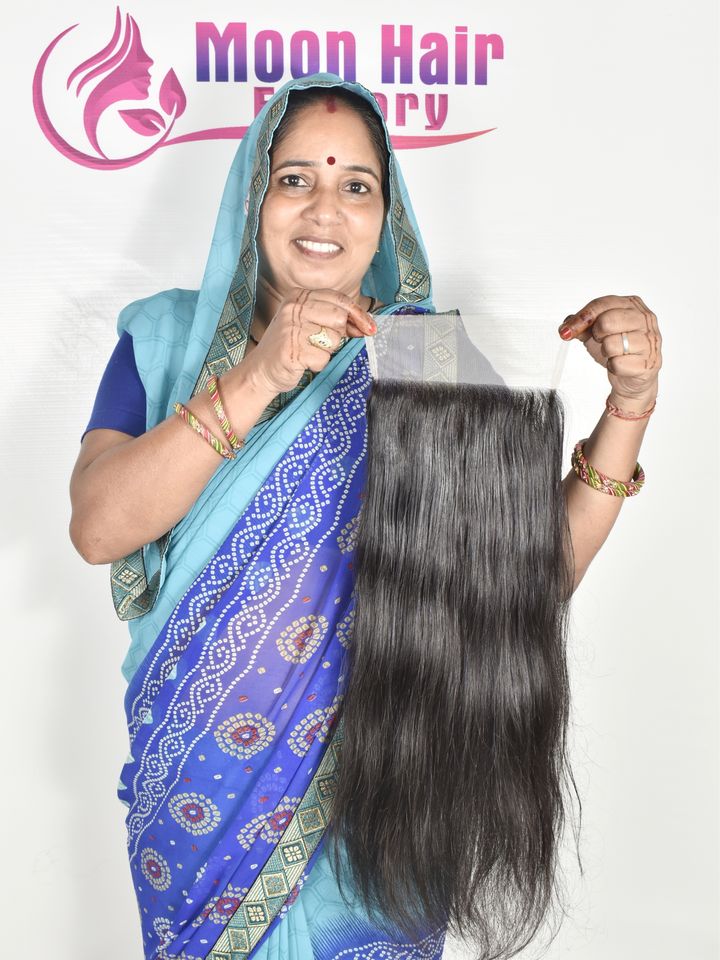 หนังกำพร้าธรรมชาติธรรมชาติผมคนอินเดียปิดปิดผมตรงนุ่มเนียน