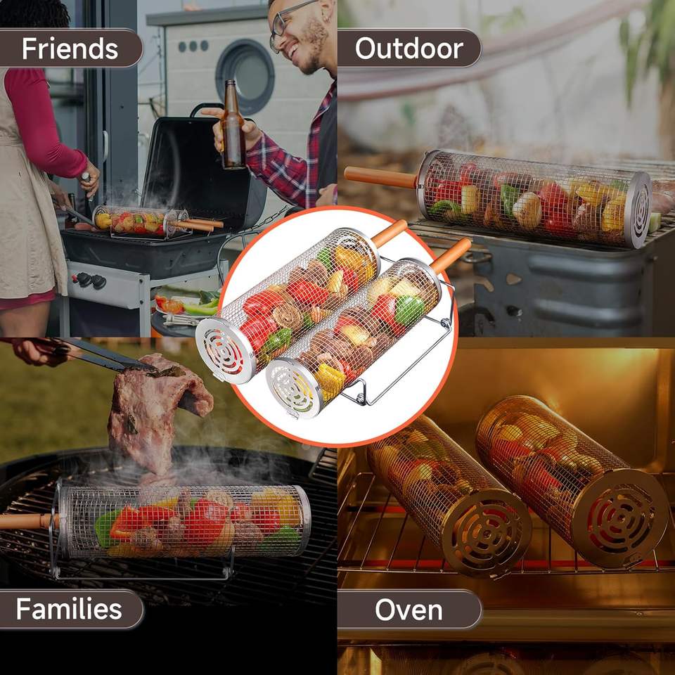 ตะกร้าปิ้งย่างแบบพับได้ ด้ามจับไม้ธรรมชาติ พกพาสะดวก สำหรับแคมป์ปิ้งและปิกนิกกลางแจ้ง ขายส่ง