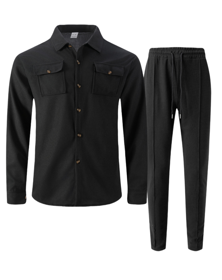 ชุดสูทลำลองผ้าวาฟเฟิลสำหรับผู้ชายผ้าวาฟเฟิลระบายอากาศได้ดีกันลมน้ำหนักเบา100% ผ้าโพลีเอสเตอร์ฤดูใบไม้ร่วง