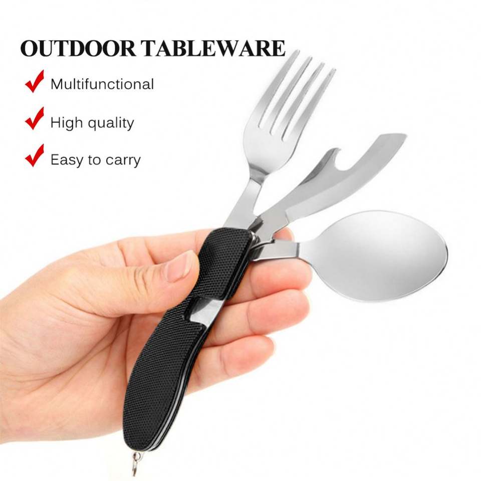Multifunction 4 In 1 Cutlery Set Pocket Folding Knife Fork Spoon