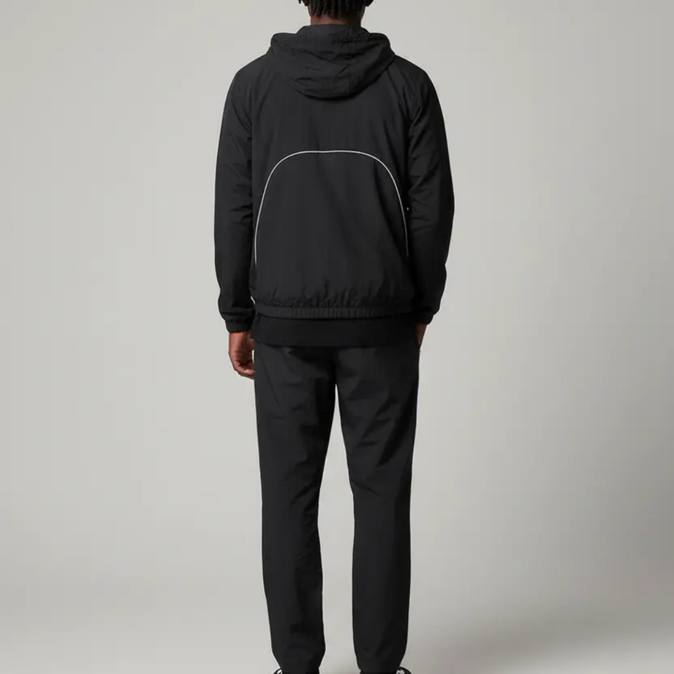ชุดวอร์มวิ่งผู้ชายสำหรับกีฬากลางแจ้งขายส่ง ปักโลโก้ตามสั่ง พิมพ์ลายดิจิทัล ระบายอากาศได้ดี มีฮู้ด