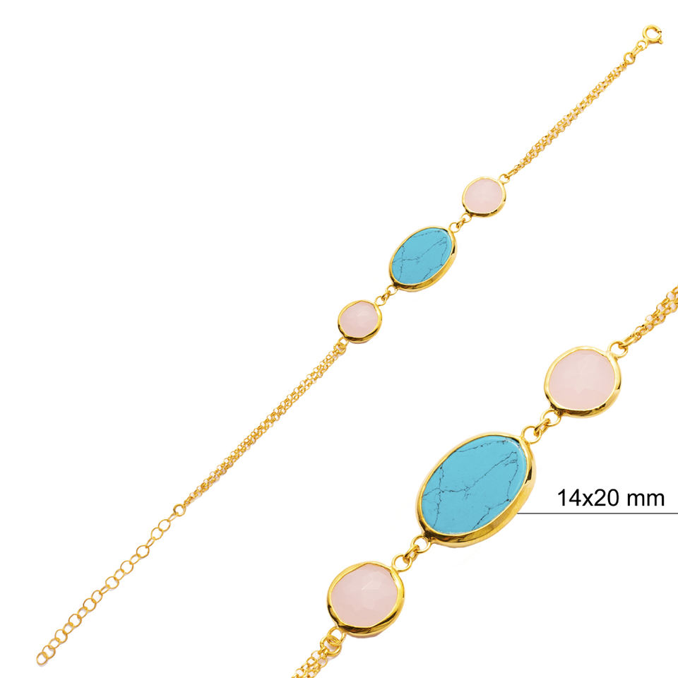 สร้อยข้อมือเงินควอตซ์สีชมพูทรงรีทำด้วยมือทำด้วยมือทำมือ925เครื่องประดับเงินสเตอร์ลิง