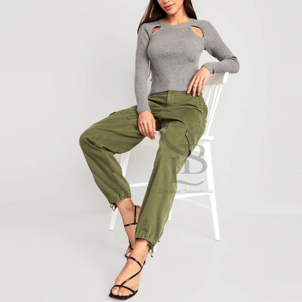 กางเกงคาร์โก้ขาบานสำหรับผู้หญิงกางเกงขนแกะแบบลำลองระบายอากาศได้ดีน้ำหนักเบาไซส์