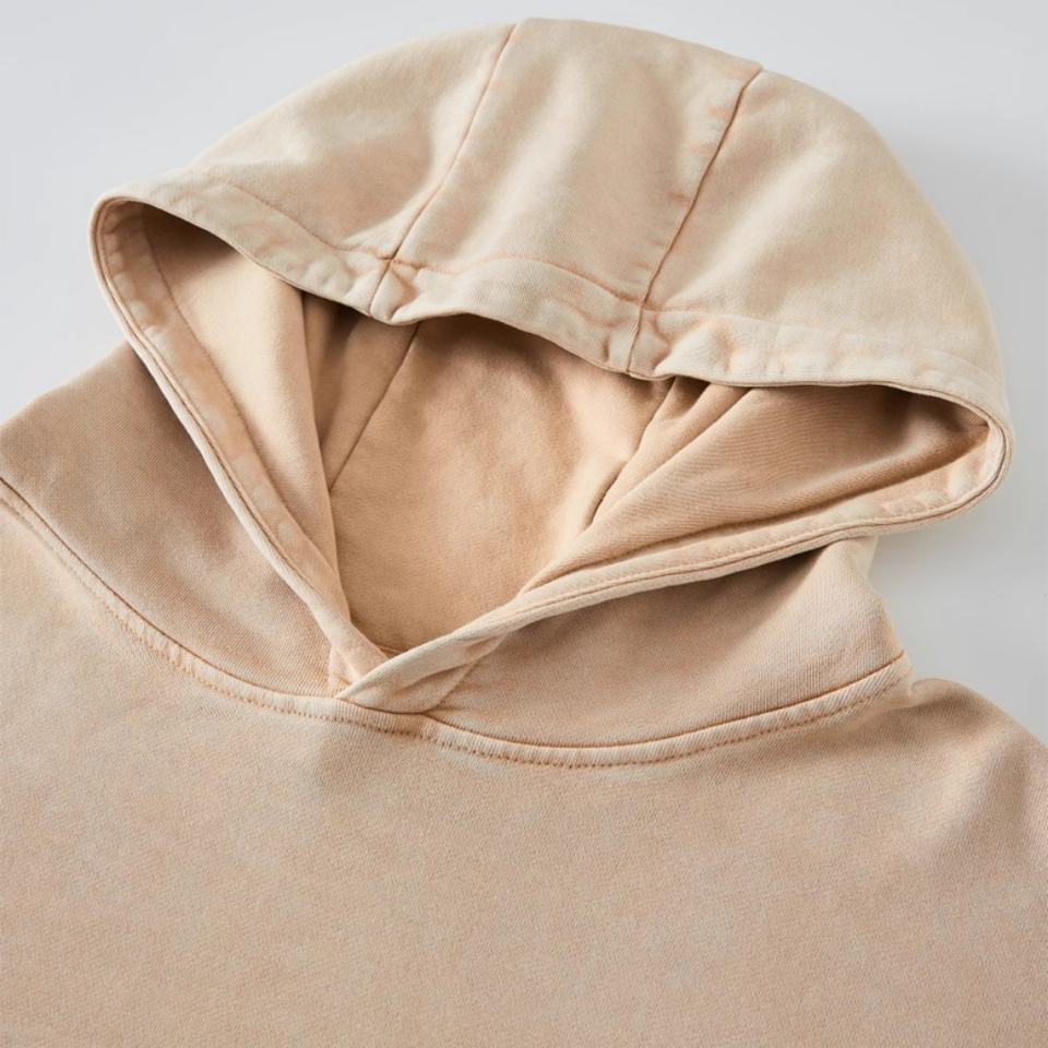 เสื้อฮู้ดผู้ชายไซส์ใหญ่ทรงหลวม สไตล์เรียบง่าย แฟชั่นสตรีท สีพื้น ผ้าหนา ซักแบบสโนว์วอช