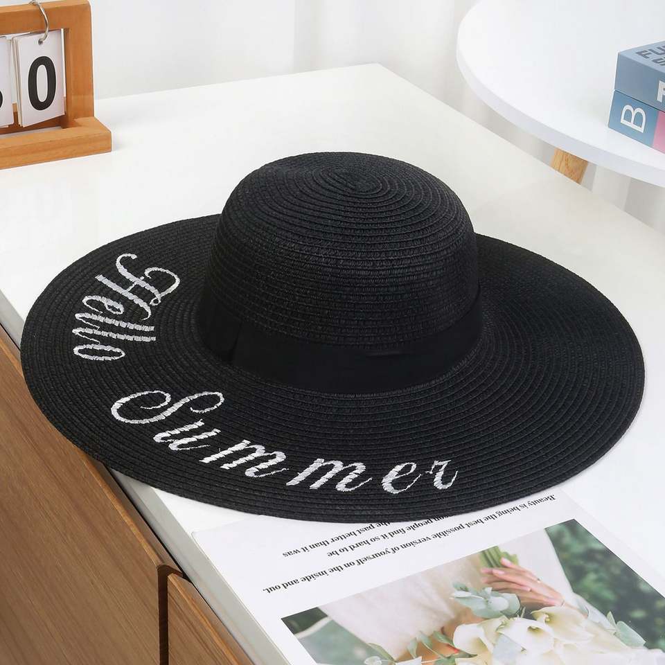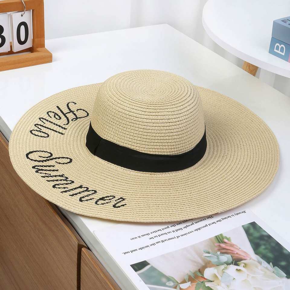 หมวกฟางปีกกว้างสำหรับสตรีพิมพ์โลโก้แบบปรับแต่งได้มี6สีสำหรับใช้ในงานปาร์ตี้ชายหาดกิจกรรมกลางแจ้ง
