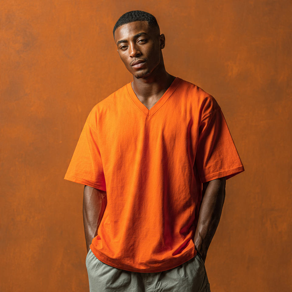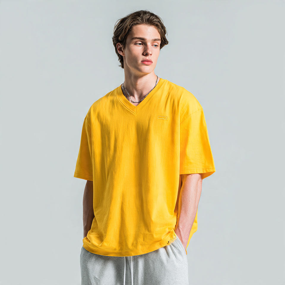 เสื้อยืดคอวีผู้ชาย สไตล์สตรีทแฟชั่น