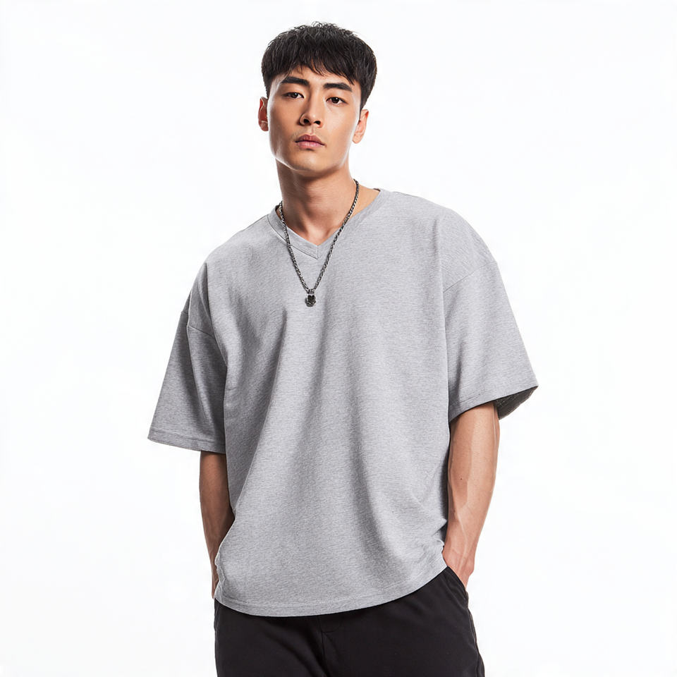 เสื้อยืดโอเวอร์ไซส์ผู้ชาย คอวี แขนสั้น เสื้อยืดฤดูร้อน ผู้ชาย ผ้าโพลีเอสเตอร์ผสมคอตตอน 100% เสื้อยืดทรงหลวมไหล่ตก