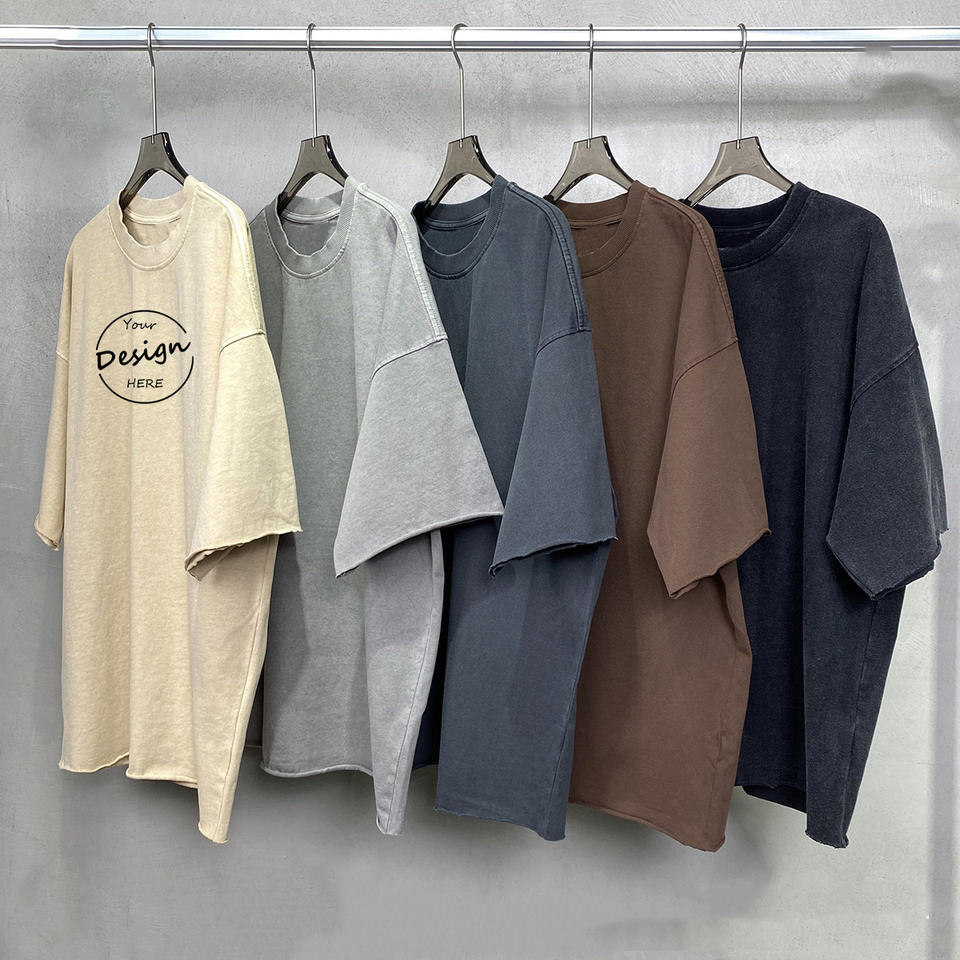 เสื้อยืดผ้าฝ้ายโอเวอร์ไซส์สำหรับผู้ชายเสื้อซักลายกรด100% 305 GSM สไตล์วินเทจ