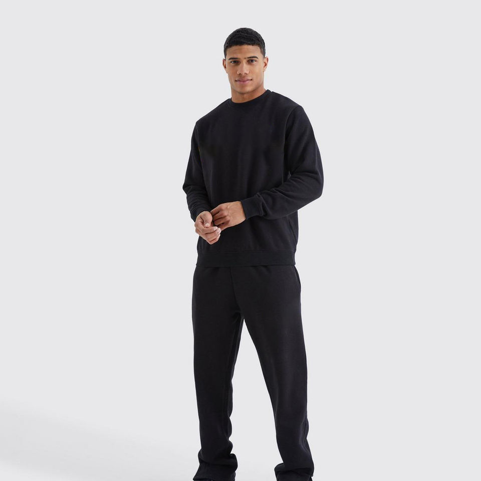 ชุดวอร์มแบบสวมหัวสีดำสำหรับผู้ชายชุดวอร์มลำลองคอกลมพิมพ์ลายสำหรับฤดูใบไม้ผลิทำจากโพลีเอสเตอร์ว่างเปล่า