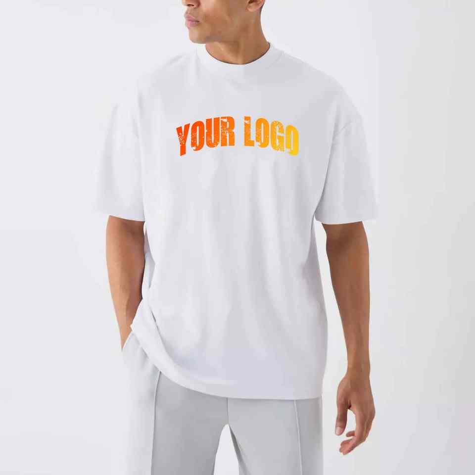 เสื้อยืดฮิปฮอปผู้ชายไซส์ใหญ่ คอโอ แขนสั้น ทรงหลวม ผ้าฝ้าย 100% รับสกรีนโลโก้ ขายส่ง
