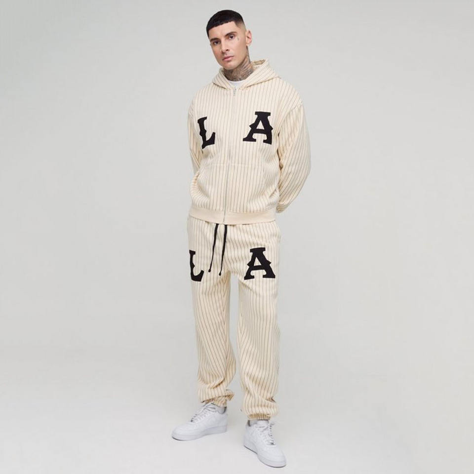 ชุดวอร์มกางเกงวอร์มมีฮู้ดโอเวอร์ไซส์กางเกงคาร์โก้กางเกงวอร์มผ้าฝ้าย100% มีซิปชุดวอร์มลายทางเสื้อผ้าสำหรับใส่ไปยิม