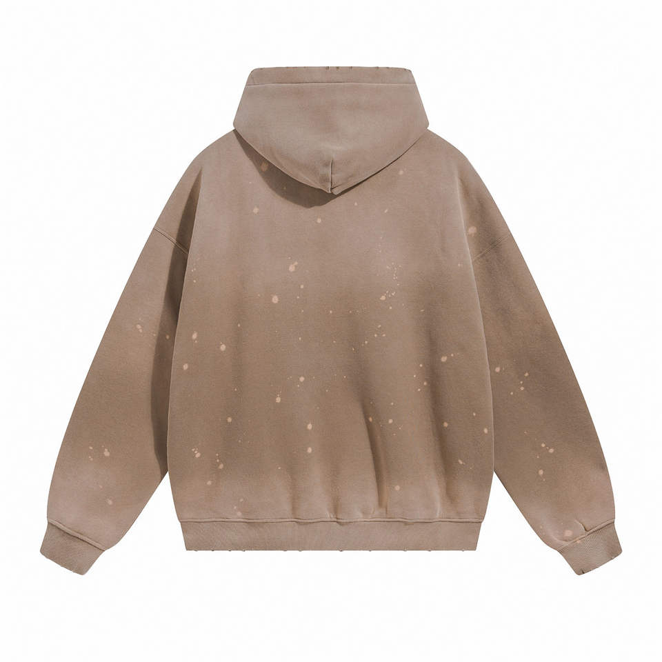 เสื้อฮู้ดสีสเปรย์โอเวอร์ไซส์วินเทจซักกรดมีฮู้ดเสื้อสเวตเชิ้ตมีฮู้ดเปิดไหล่ปล่อย