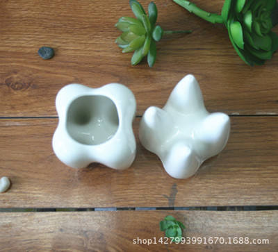 กระถางเซรามิกขนาดเล็กสำหรับปลูกต้นไม้ในร่ม รุ่น P355 ขายส่ง ราคาถูก รูปทรงน่ารักแปลกตา เคลือบสีขาว เหมาะสำหรับตกแต่งบอนไซขนาดเล็ก