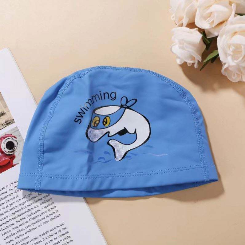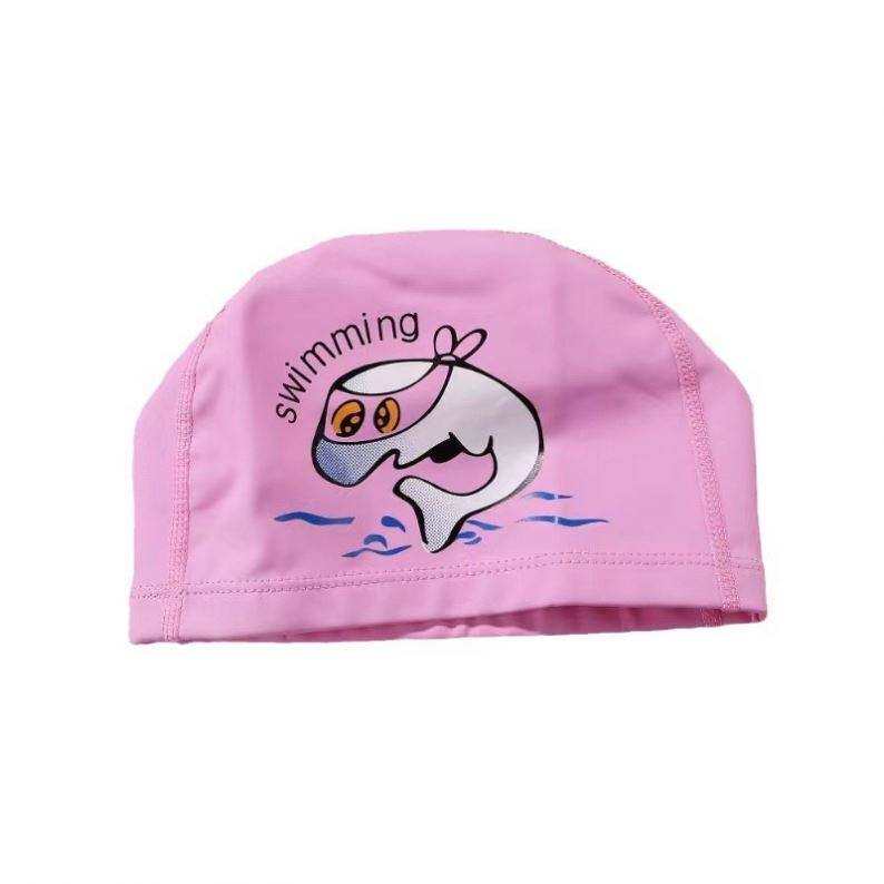 หมวกว่ายน้ำผ้า PU ลายการ์ตูนสำหรับเด็กหมวกไนล่อนเคลือบ PU หมวกว่ายน้ำกันน้ำ