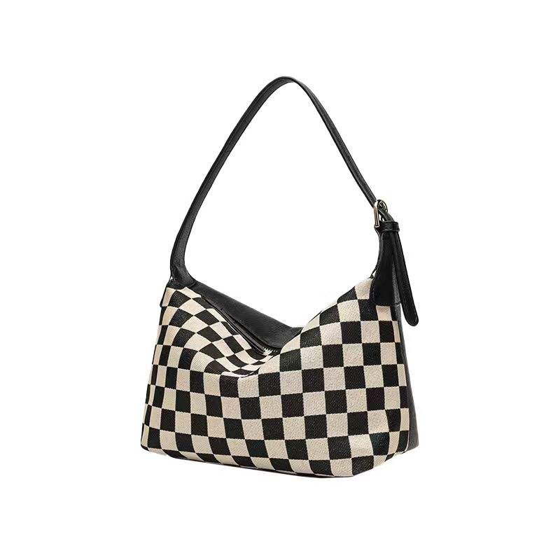 กระเป๋าใส่อาหารกลางวันลายตารางหนัง PU แบบขายส่ง สไตล์เรโทร ทรงสี่เหลี่ยม ดีไซน์เนอร์ กระเป๋าสะพายข้างลำลองสำหรับใช้ในชีวิตประจำวัน