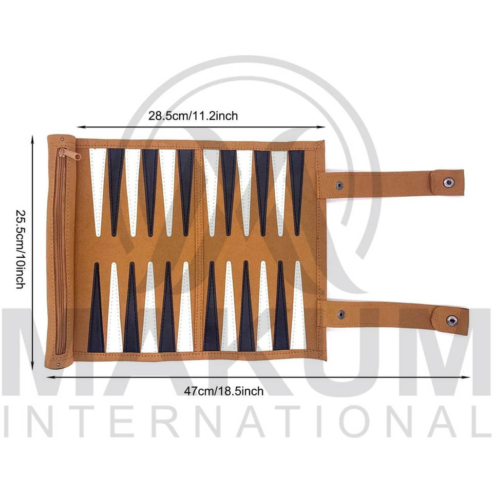 ชุดแบ็คแกมมอนพกพาหนัง PU แบบม้วนเก็บได้ สำหรับเล่นหมากรุกในร่มและกลางแจ้ง ขายส่ง