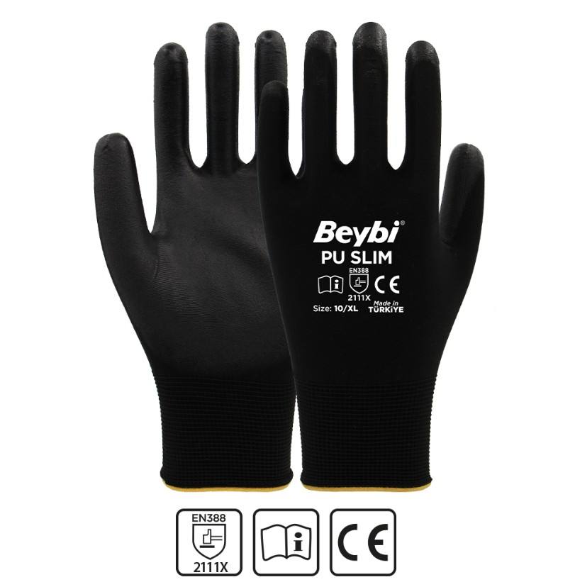 ถุงมืออุตสาหกรรมหนัง PU และโพลีเอสเตอร์สำหรับงานหนักเพื่อป้องกันมือและแขน
