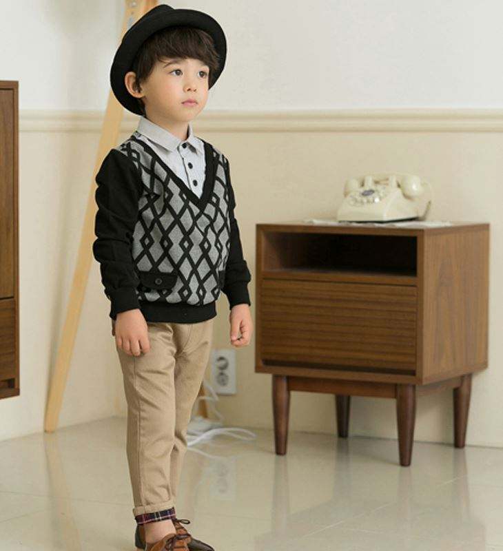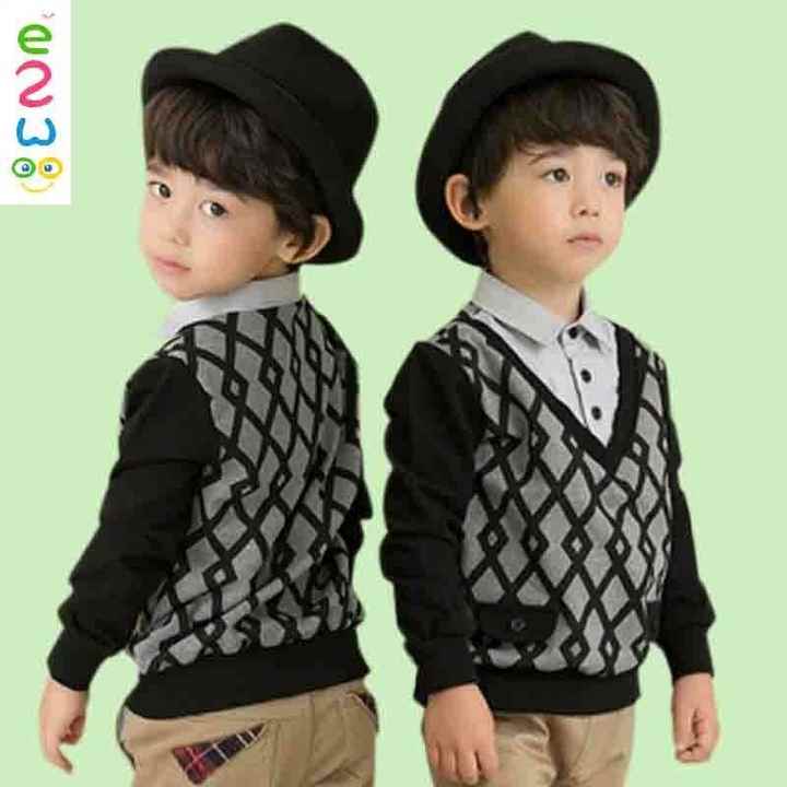 เสื้อยืดแขนยาวเด็กผู้ชายแบบใหม่ แต่งระบาย คอปก ขายส่ง
