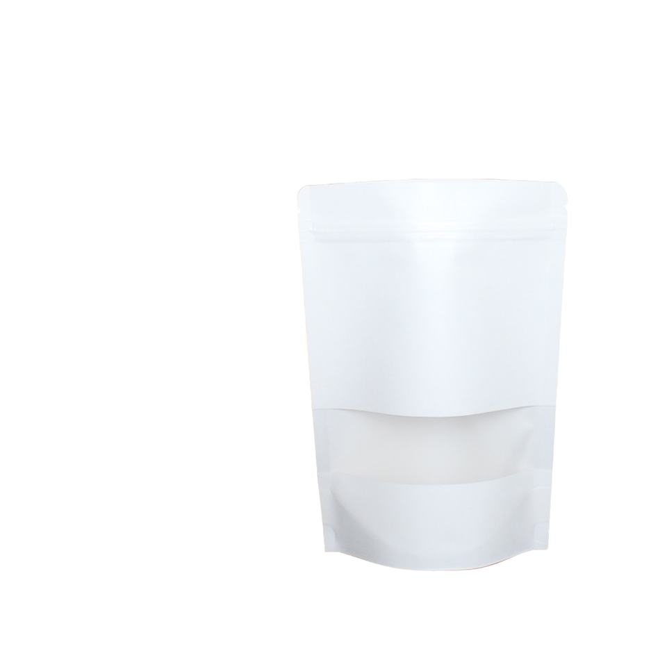 ถุงกระดาษขายส่งซิปเคลือบสีขาวกระดาษคราฟท์ยืนขึ้นกระเป๋าที่มีหน้าต่าง Mylar ถุง Ziplock สำหรับกาแฟขนมขบเคี้ยว