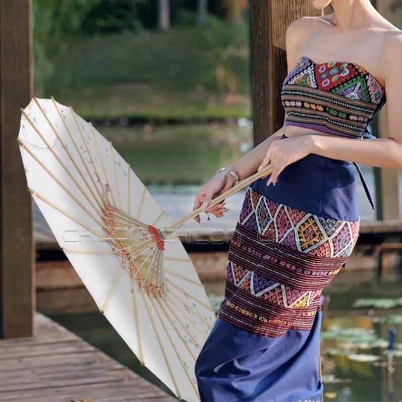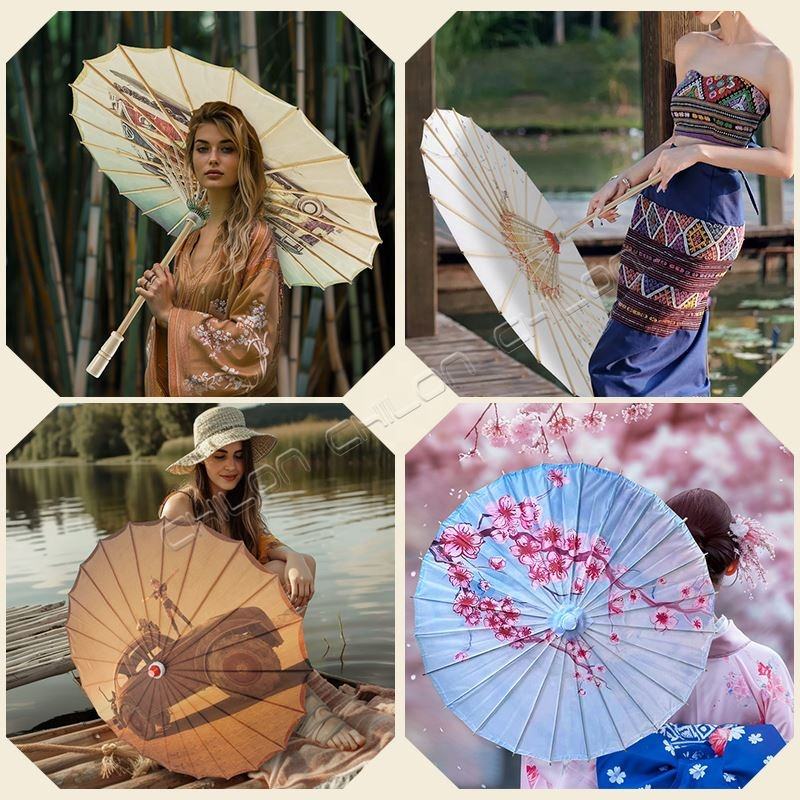 ร่มกันแดดกระดาษสีขาวสำหรับงานแต่งงานงานหัตถกรรมตกแต่งทำด้วยมือ