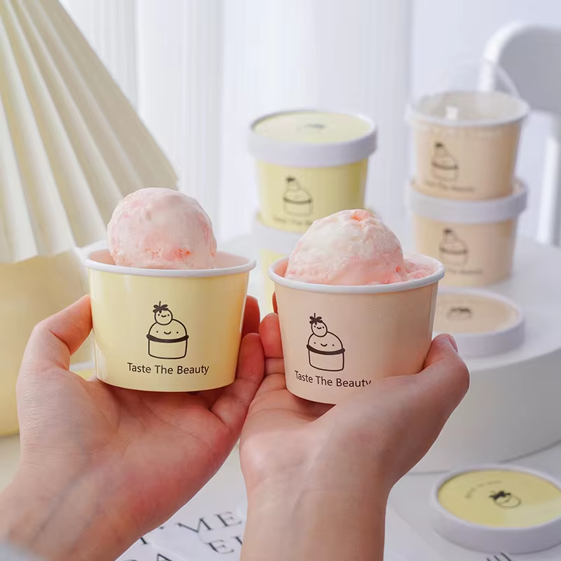 ถ้วยกระดาษสำหรับไอศกรีมโยเกิร์ตแช่แข็งถ้วยกระดาษแบบใช้แล้วทิ้ง