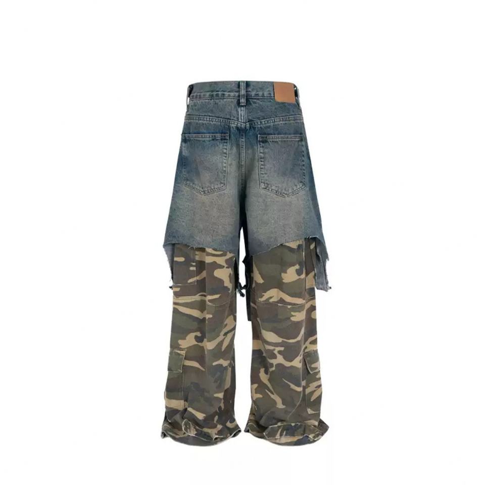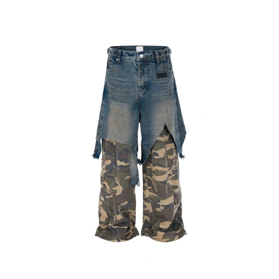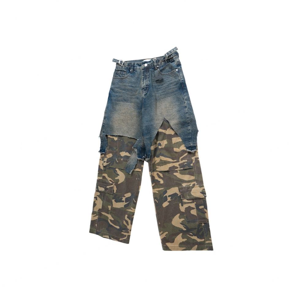 กางเกงขายส่งลายปะติดสำหรับผู้ชาย กางเกงผ้าฝ้ายลายพรางสไตล์ฮิปฮอป แฟชั่นใหม่ สตรีทแวร์ กางเกงยีนส์ผู้ชาย