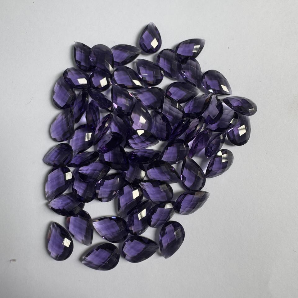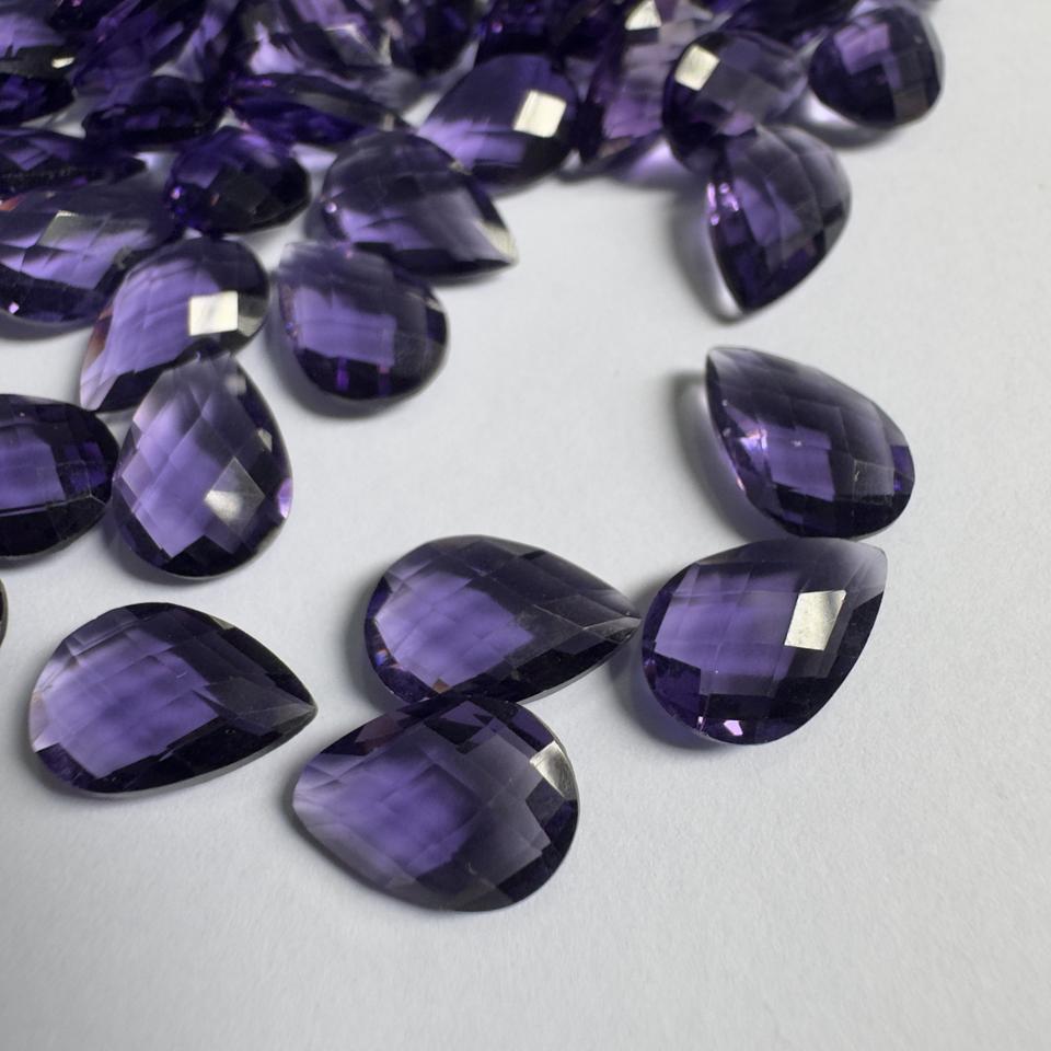 หินควอทซ์สังเคราะห์พลอยแอเมทิสต์ตัดลูกแพร์อัญมณีสีม่วงเหลี่ยมเพชรพลอยหลวมสำหรับทำเครื่องประดับทำควอตซ์อเมทิสต์สังเคราะห์