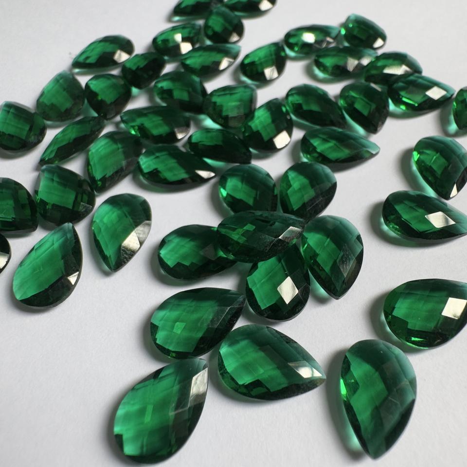 พลอยควอตซ์สีเขียวทรงหยดน้ำเจียระไนแบบขายส่ง สำหรับทำเครื่องประดับ พลอยสังเคราะห์ทรงหยดน้ำสีเขียว