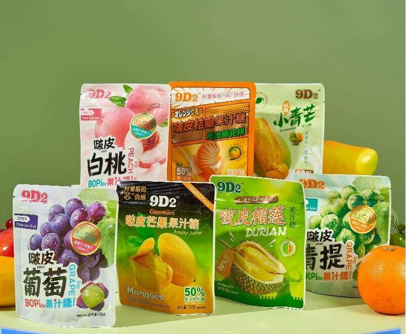 ลูกอมมะม่วงปอกเปลือกแบบขายส่ง ลูกอมกัมมี่รูปผลไม้ 2D 3D ลูกอมกัมมี่นิ่ม 9D2