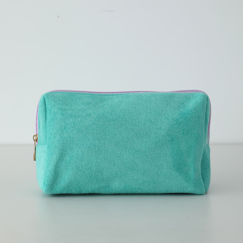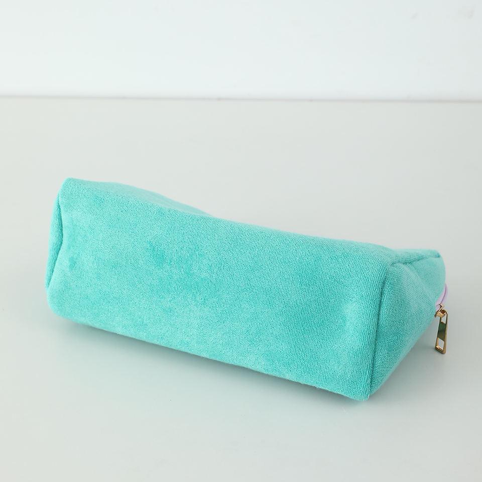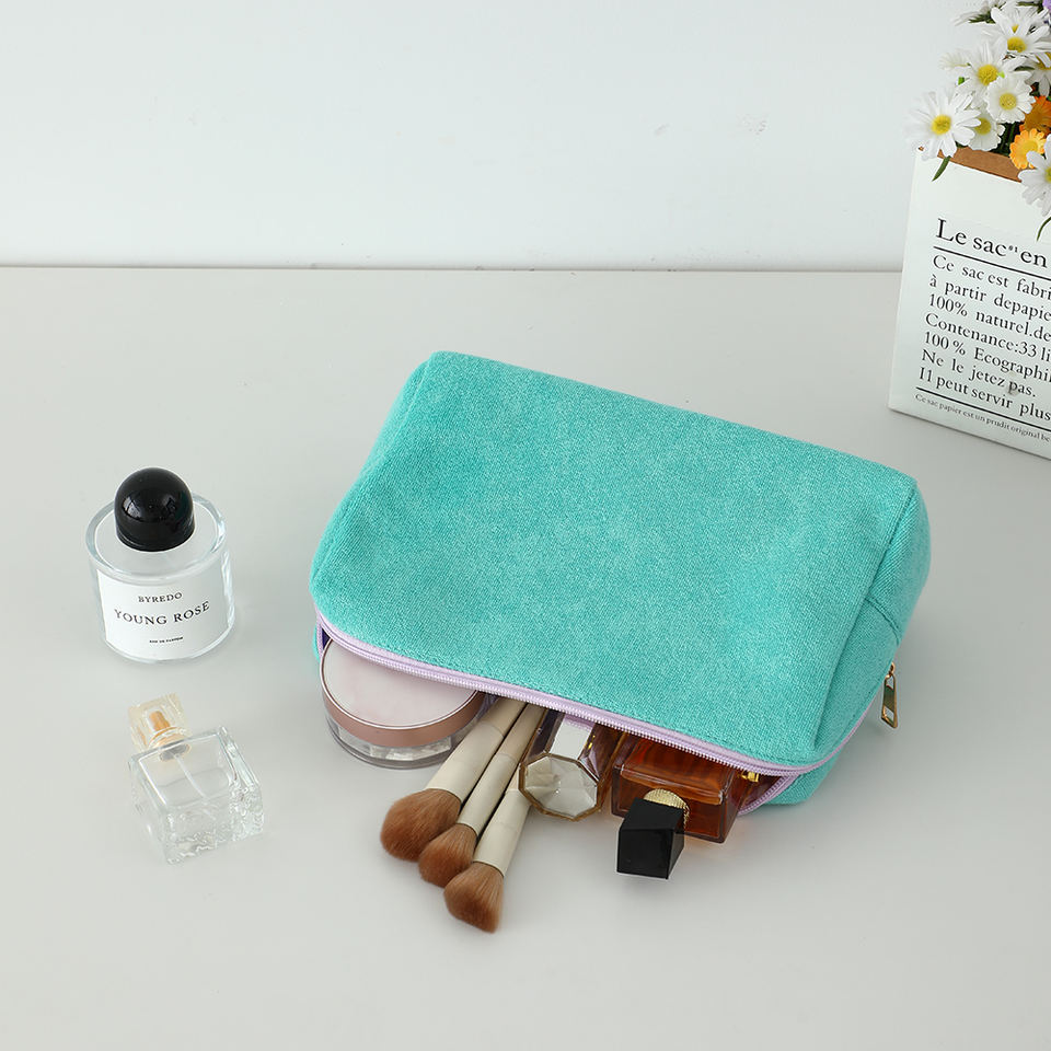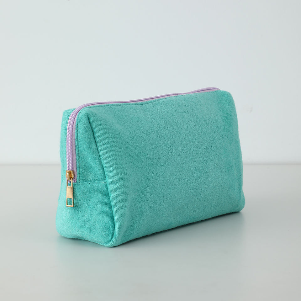 กระเป๋าเครื่องสำอางผ้าเทอร์รี่รูปสามเหลี่ยมแบบสั่งทำพร้อมโลโก้ส่วนตัวสำหรับผู้หญิง กระเป๋าใส่เครื่องสำอางสำหรับเดินทาง
