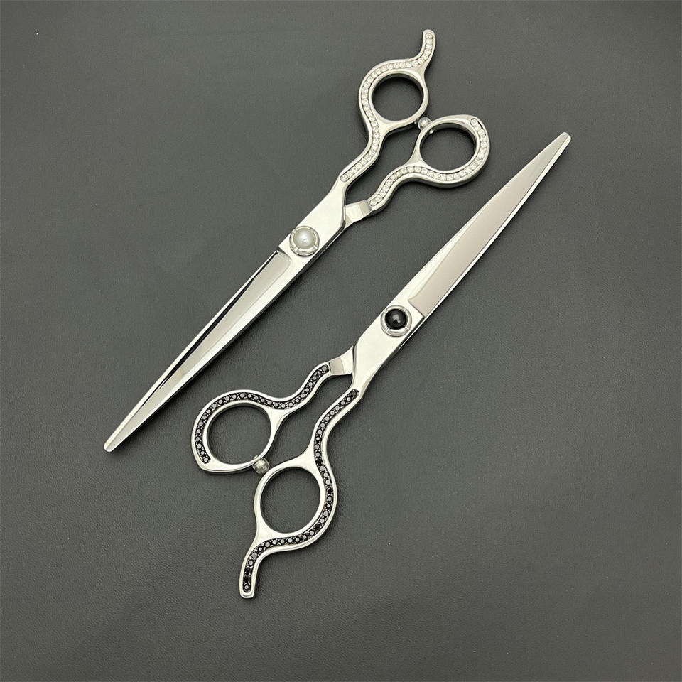 กรรไกรตัดขนสัตว์เลี้ยงแบบขายส่ง สแตนเลส 7 นิ้ว ด้ามจับประดับเพชร สำหรับตัดขนสุนัข ใช้งานสะดวก