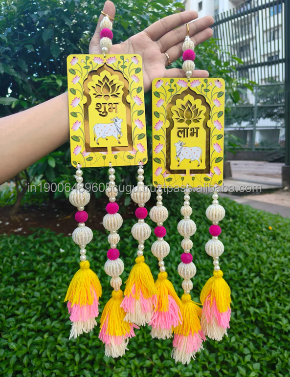 Wholesale Pichwai Cow Subh Labh Pair Wall Hanging Diwali Decoration Housewarming Favor Home Door Decor Shubh Labh Hanging