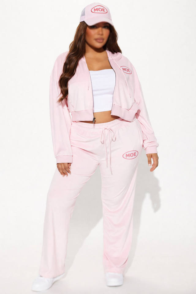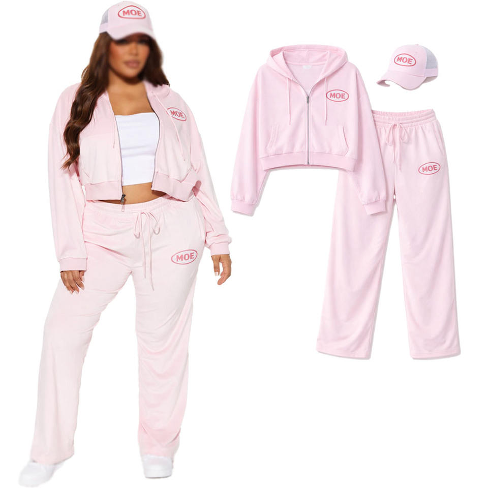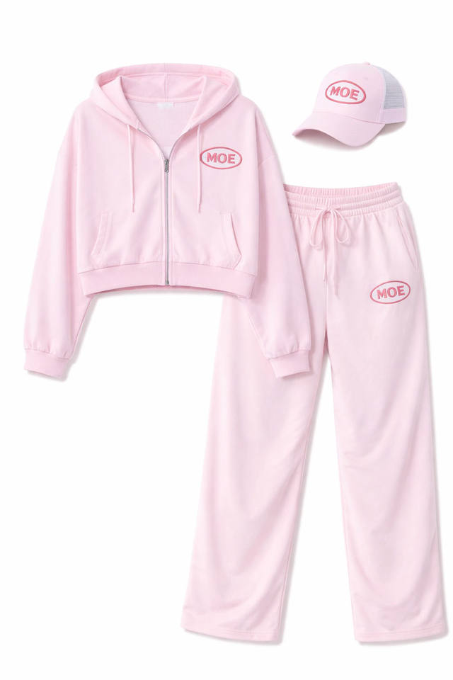 ชุดเซ็ตผ้าฝ้ายขายส่งสีชมพูประดับเพชรทั้งตัว เสื้อฮู้ดดี้โอเวอร์ไซส์ กางเกงวอร์มขาบาน ระบายอากาศได้ดี รับผลิตตามสั่ง OEM